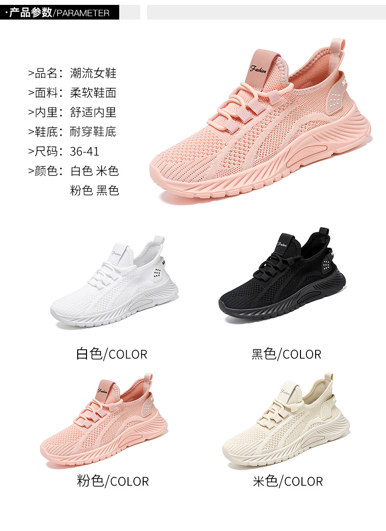 鞋子女秋季新款时尚休闲运动鞋批发跨境大码单鞋潮流飞织女鞋代发