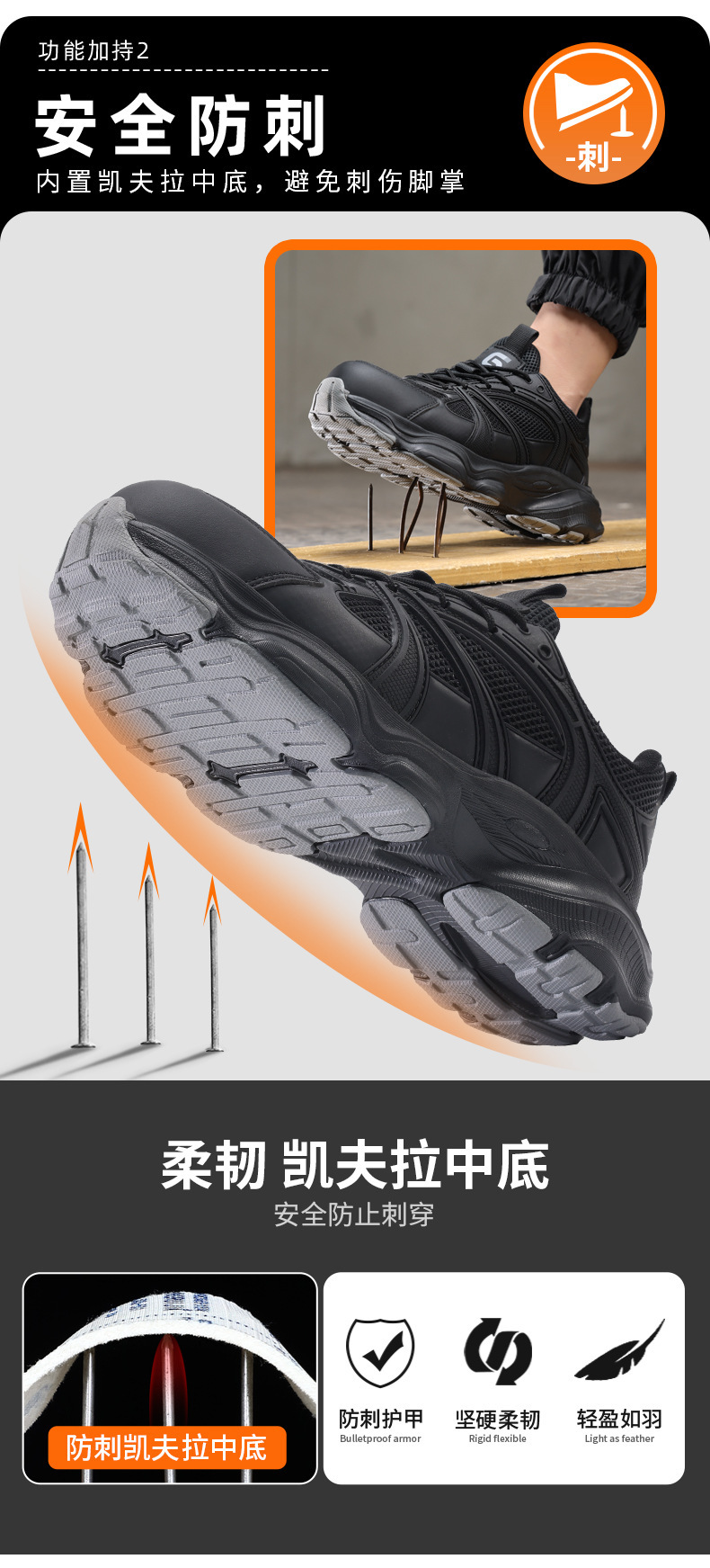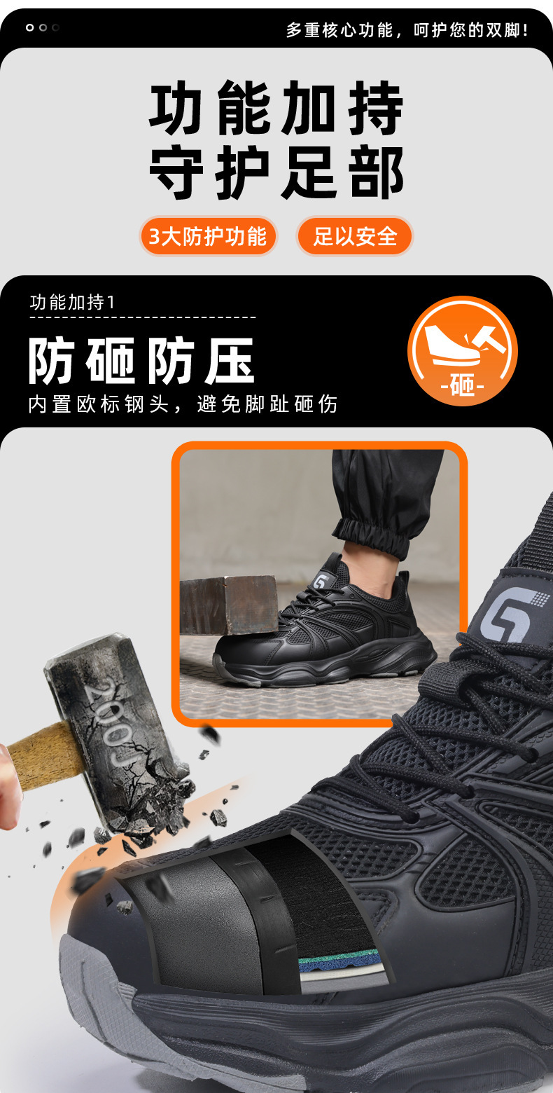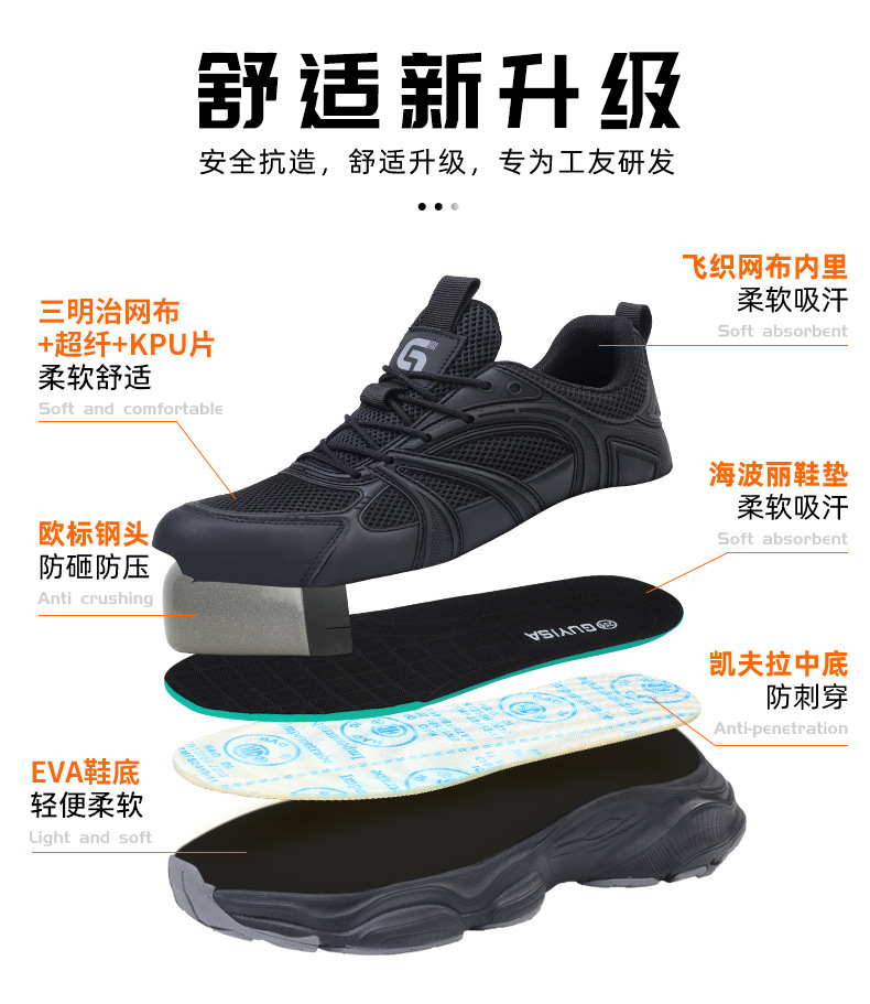 劳保鞋男款防砸防刺穿安全鞋钢包头鞋子男轻便工作鞋舒适防护鞋