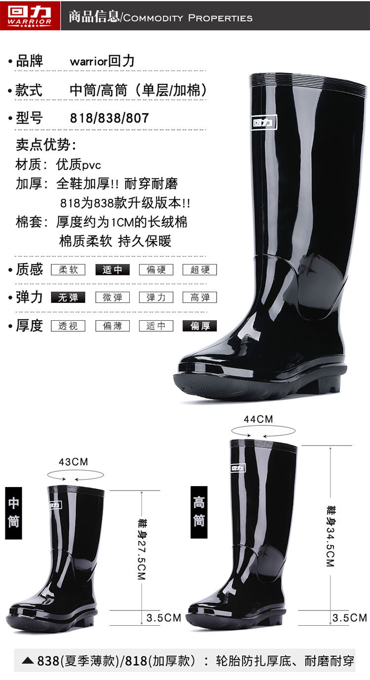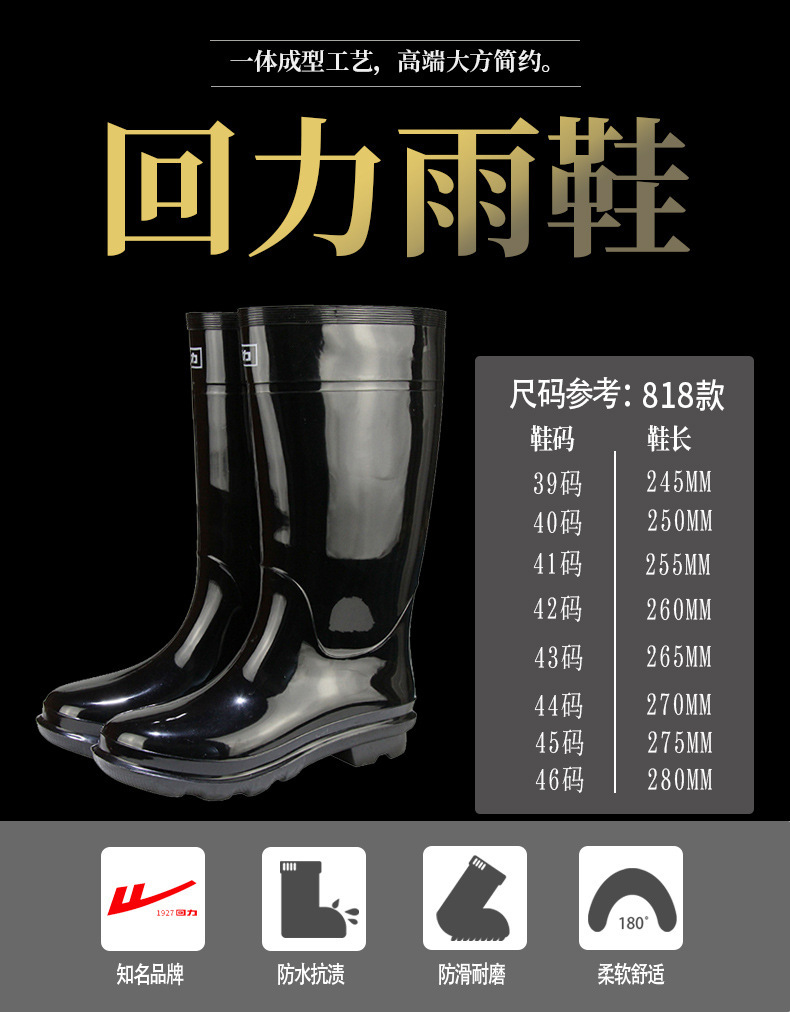 上海回力雨鞋818男士款雨靴防滑耐磨加厚全黑色劳保水鞋批发