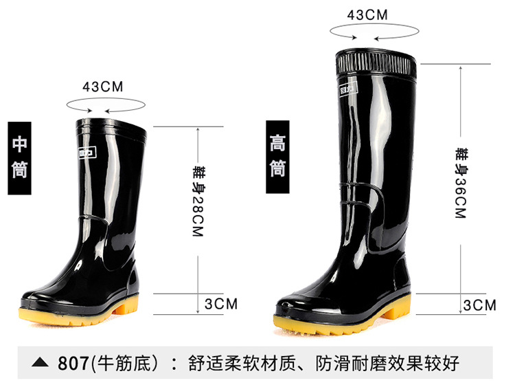 上海回力807 雨鞋男款塑胶雨鞋高筒短筒雨靴防水防滑耐磨套鞋水靴