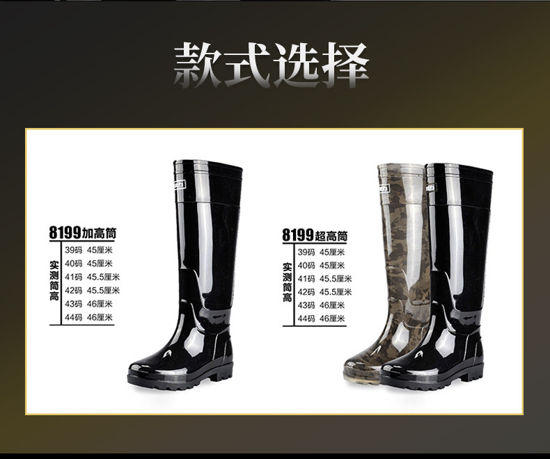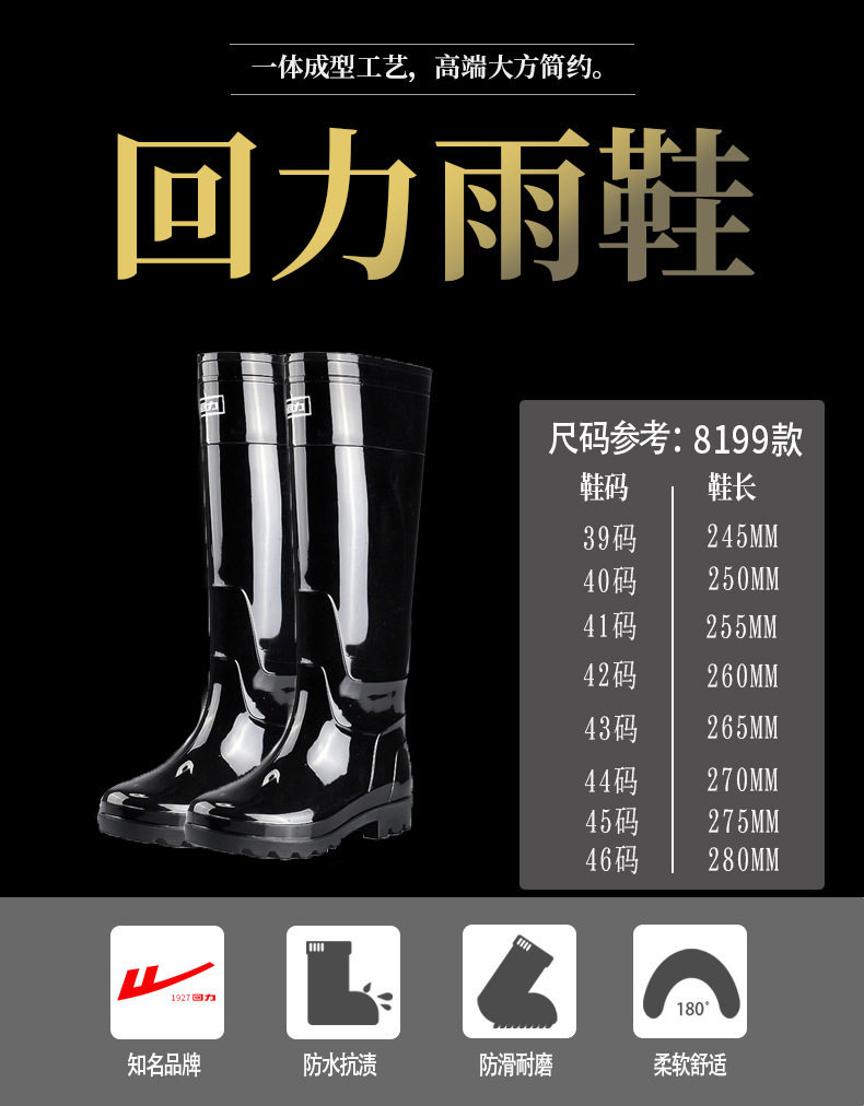 上海回力8199特高雨鞋男士耐磨防滑防水加长筒水鞋男钓鱼雨靴批发