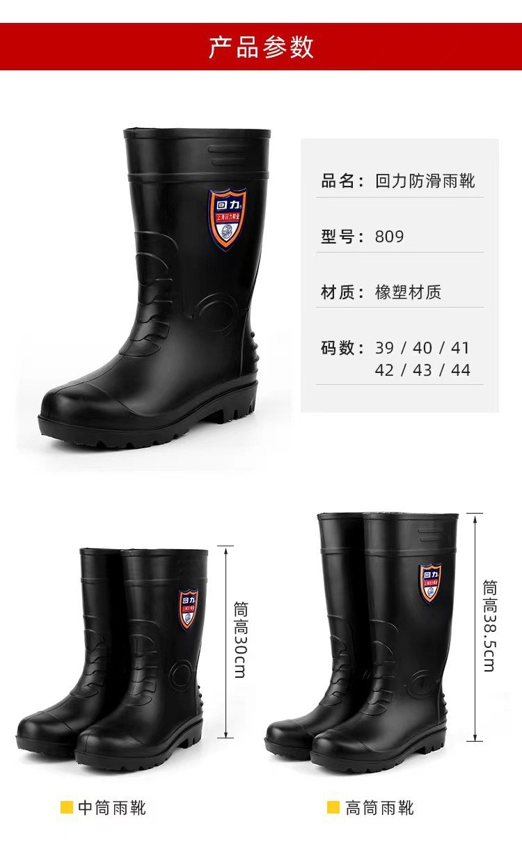 回力雨鞋809男中高筒工地建筑胶鞋工作雨靴防滑防护男士套鞋水鞋