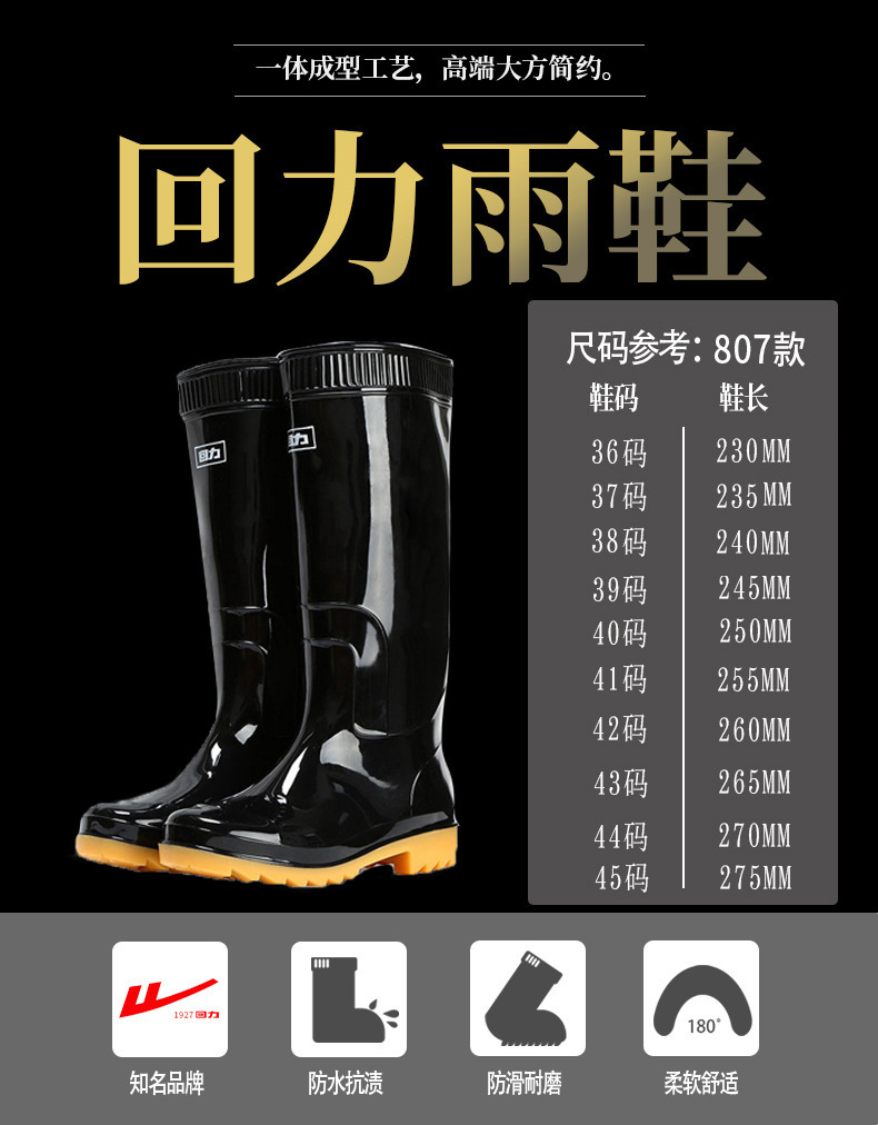 上海回力807 雨鞋成人塑胶雨鞋高帮短筒雨靴防水防滑耐磨套鞋水靴