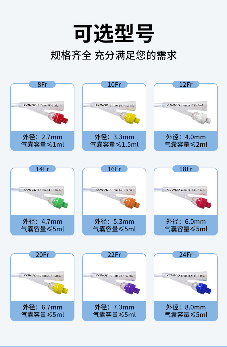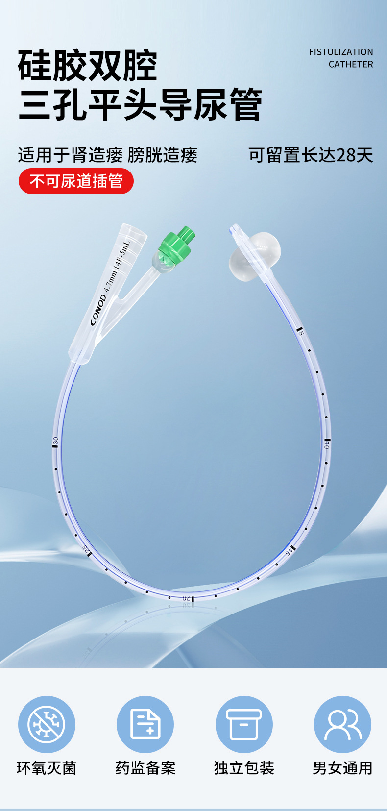 晨康一次性使用导尿管造瘘双腔球囊硅胶平头三孔导尿管肾造瘘成人