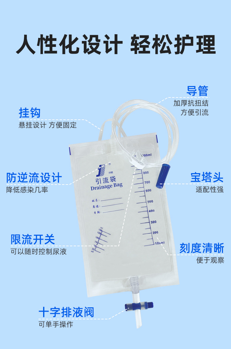 医用防逆流引流袋一次性集尿袋男女老人小孩用导尿管接尿袋抗返流
