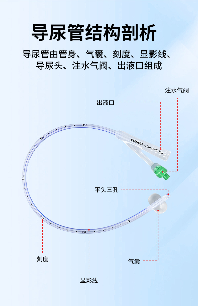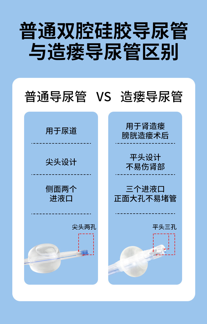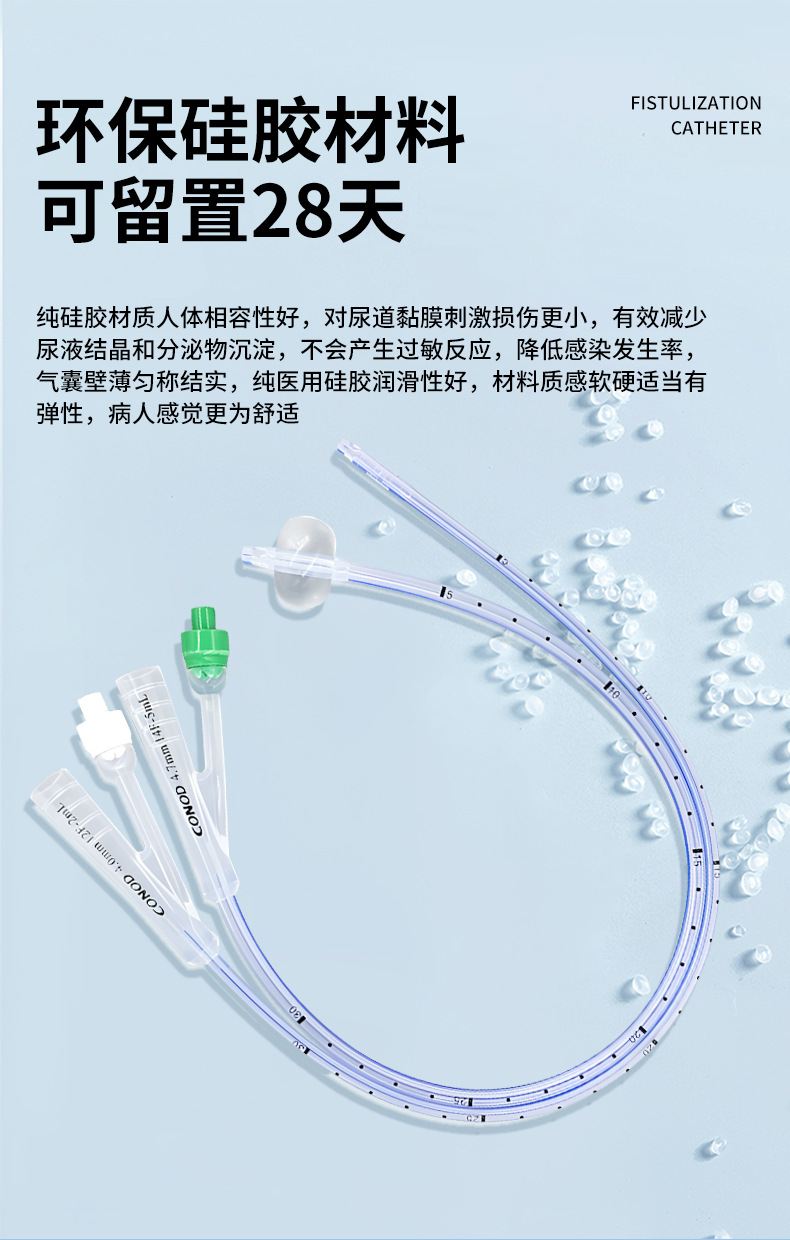一次性使用导尿管双腔球囊硅胶平头三孔肾造瘘管膀胱造瘘成人无菌