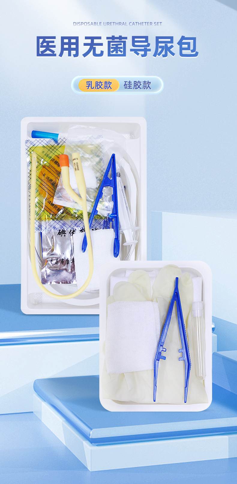晨康一次性无菌导尿包双腔三腔乳胶导尿管引流袋男女成人导尿管