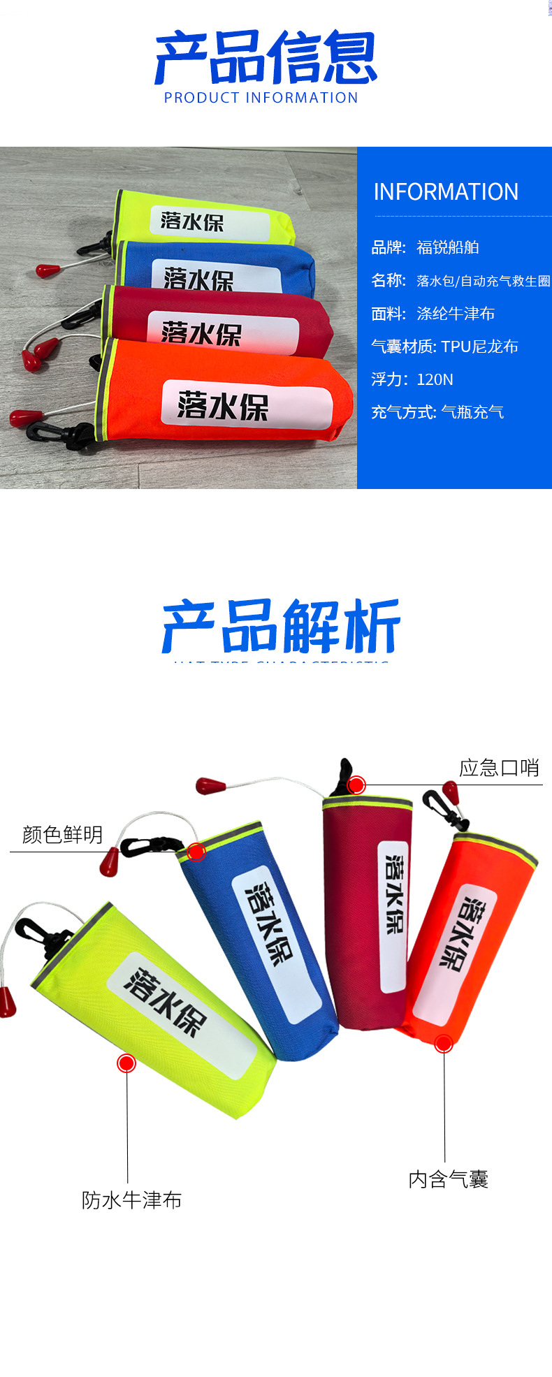 落水保自动充气带破窗衣包防溺水装备器命车载锤救命保命自救水包