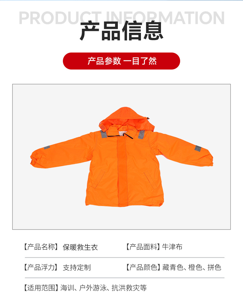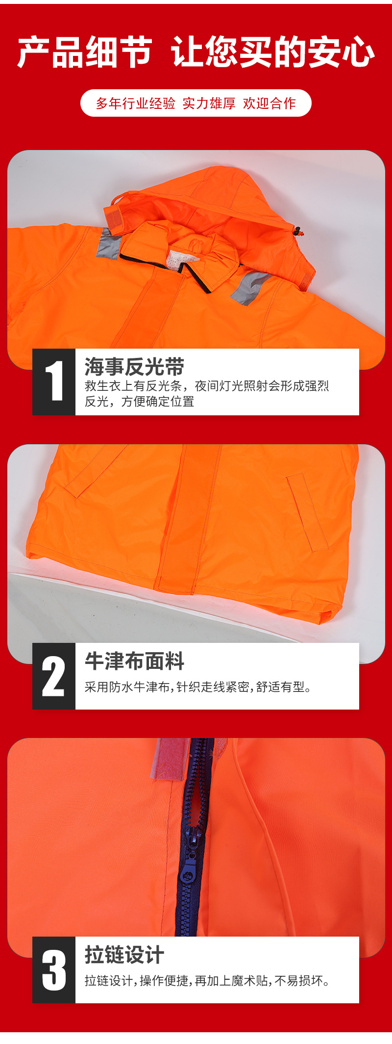船用保暖工作救生衣 防水防风加厚海上冬季工作服 专业橘色保温服