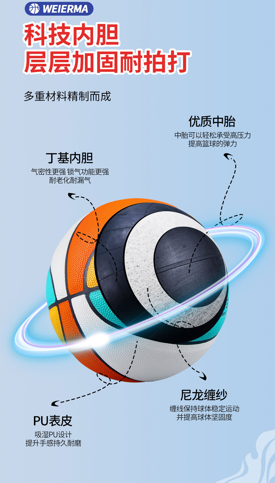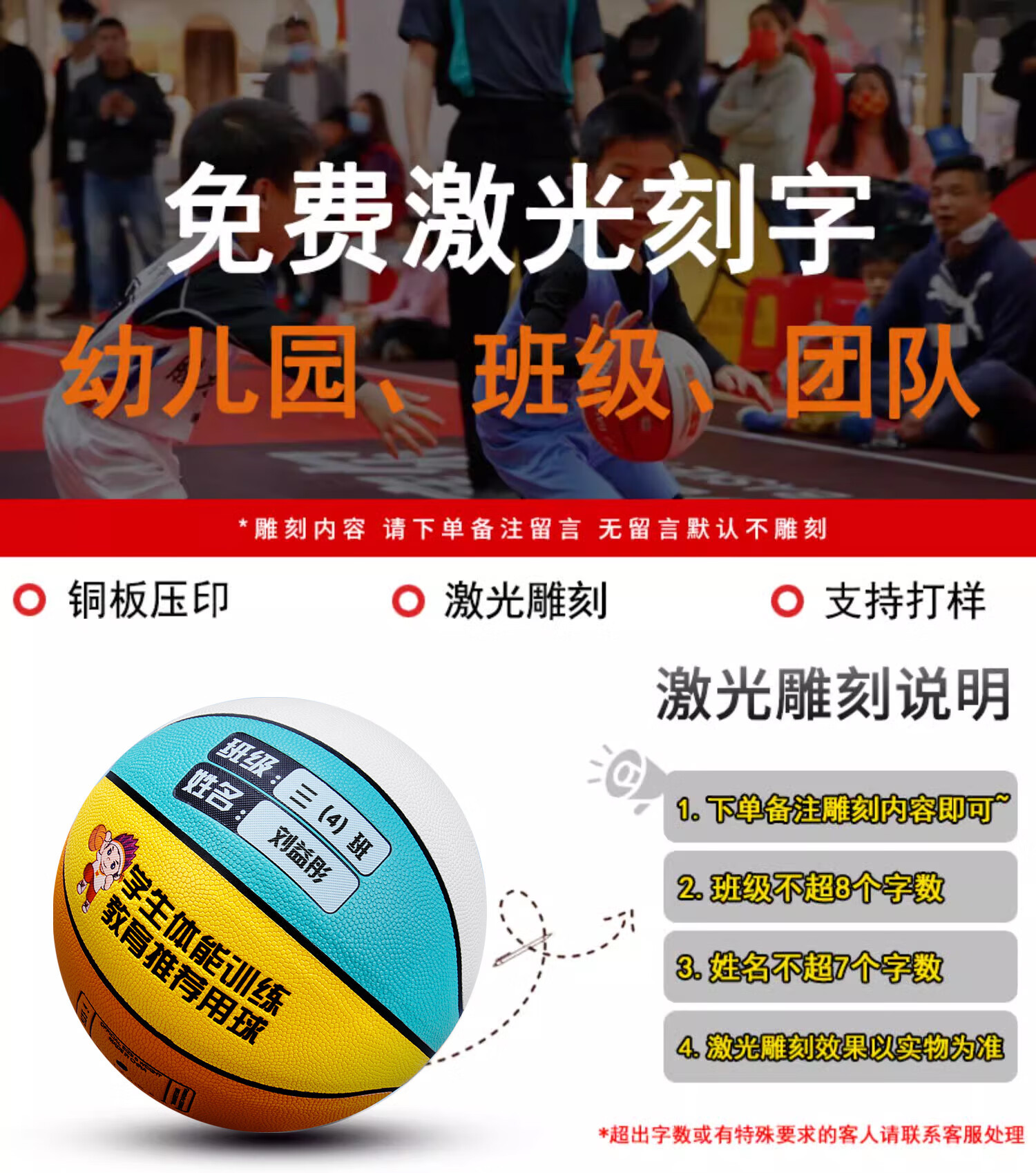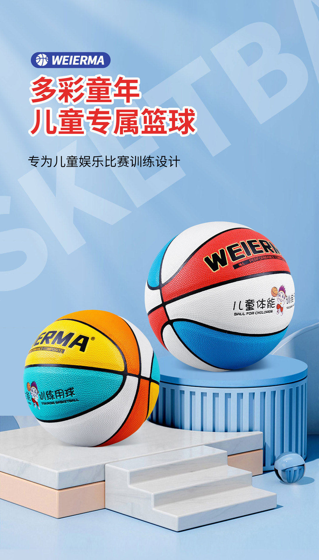 为尔马炫彩马卡龙色45号篮球小学生幼儿园儿童男女青少年训练比赛