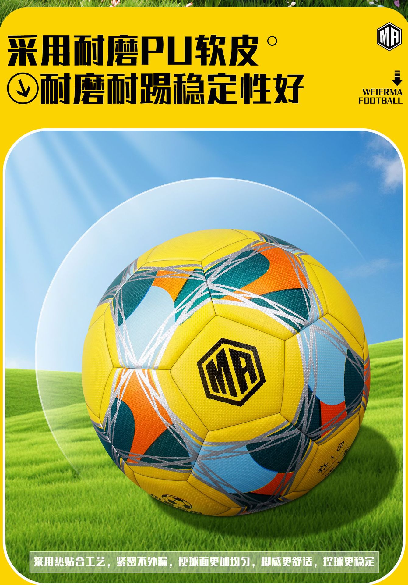 为尔马足球热粘合青少年幼儿园儿童学校5号软皮耐磨训练专用球