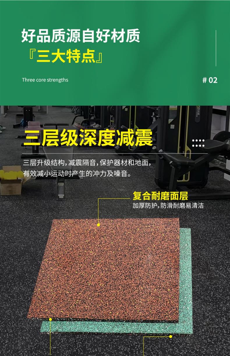 橡胶地垫健身房减震垫地胶防震隔音地板专用大面积健身房橡胶地垫