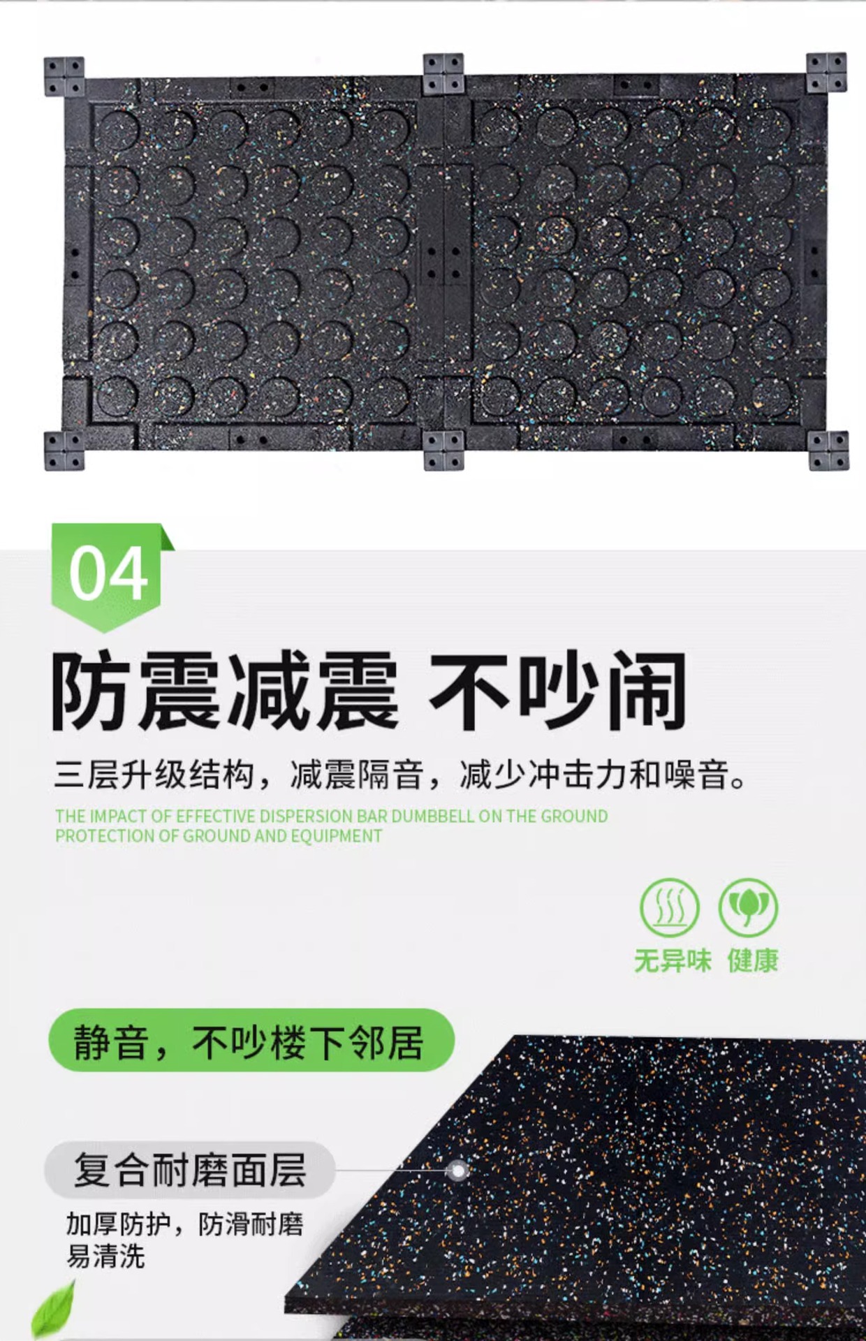 健身房橡胶地垫力量区健身地垫哑铃杠铃减震防砸地胶健身地垫