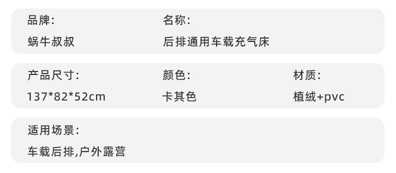 车载充气床轿车汽车后排座睡垫蜗牛叔叔气垫床户外旅行床睡觉神器