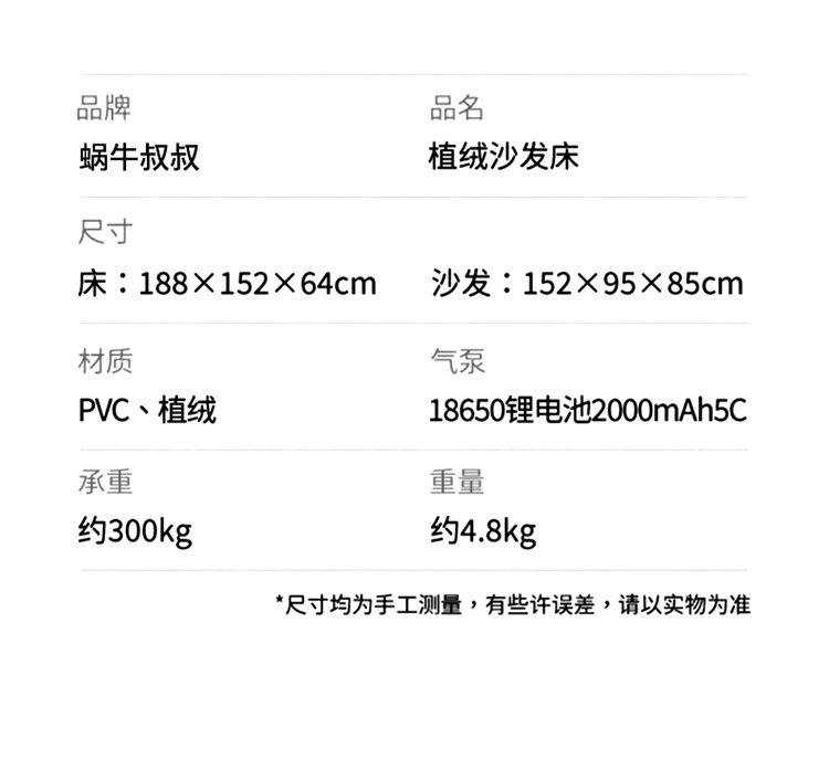 户外自动充气沙发露营气垫床蜗牛叔叔折叠家用冲气床垫睡垫充气床