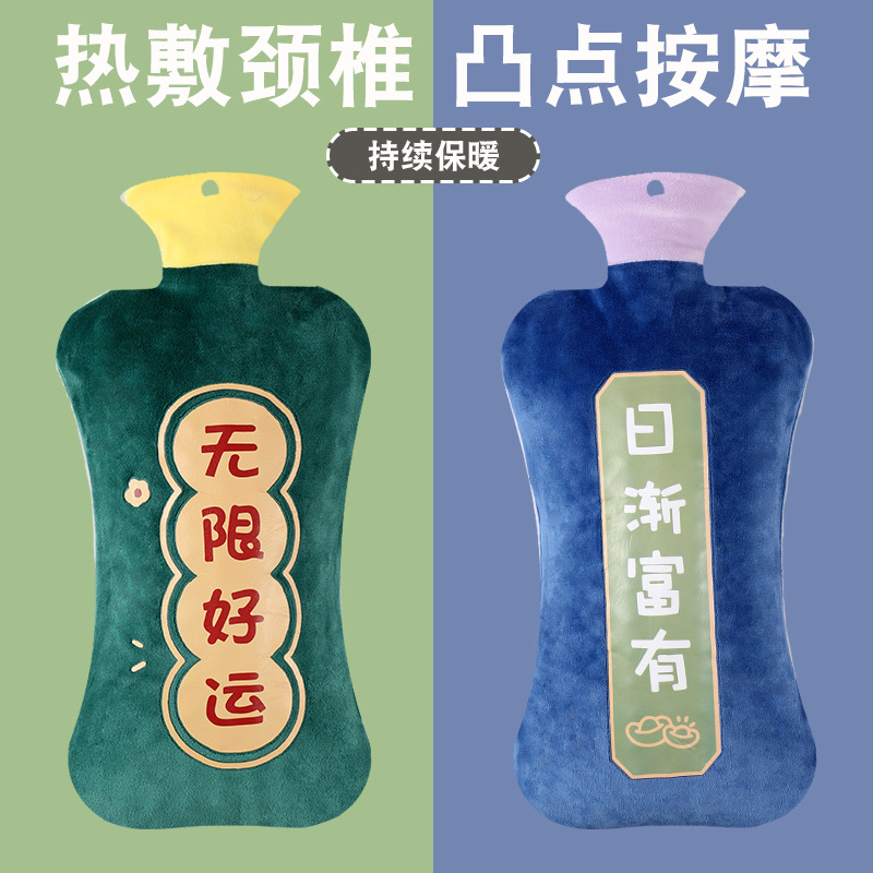 热水袋热敷颈椎注水加厚冲水枕包凸点卡通暖水袋学生灌水防爆