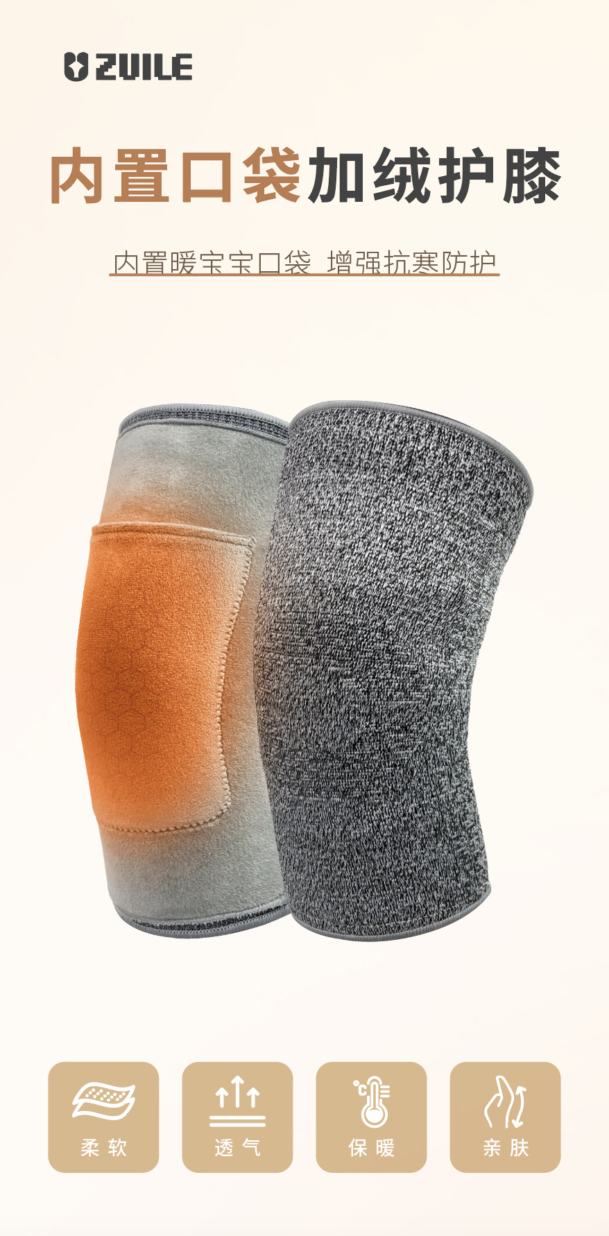 冬季保暖护膝可放置暖宝宝口袋护膝加热加绒加厚老寒腿关节护腿套