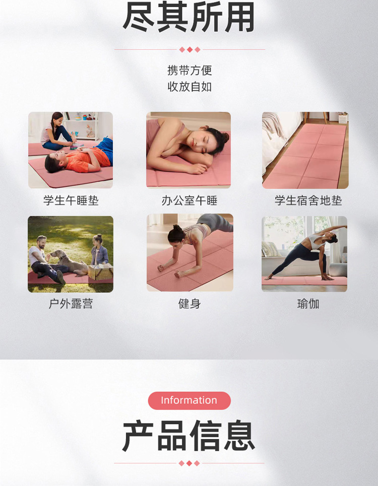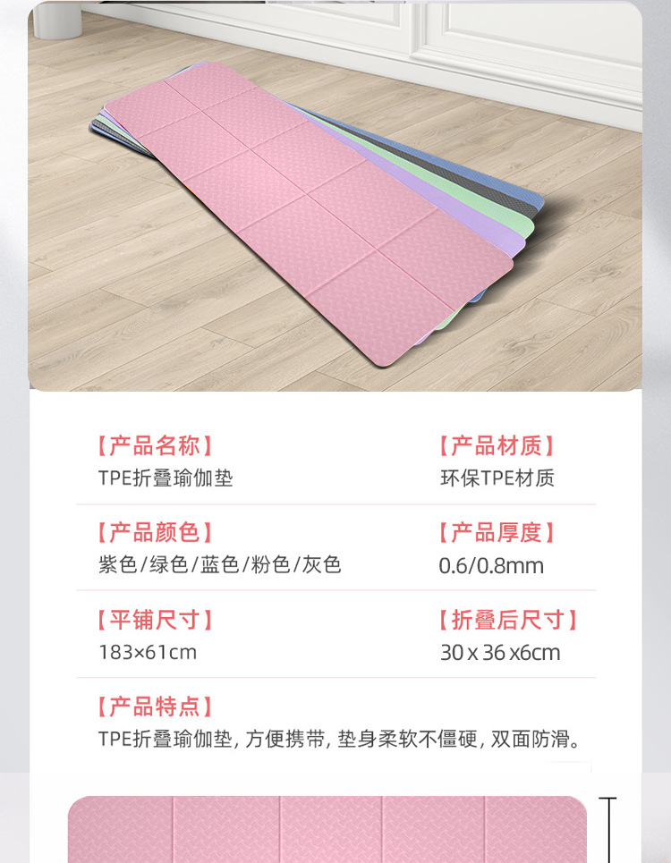TPE折叠瑜伽垫 加厚加宽午休垫户外瑜伽垫子学生户外午休防滑垫