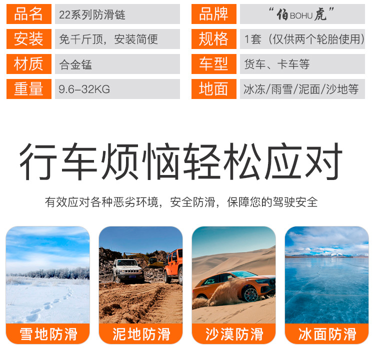伯虎22系列货车公交耐磨轮胎锰钢防滑链消防车合金钢雪地越野车链