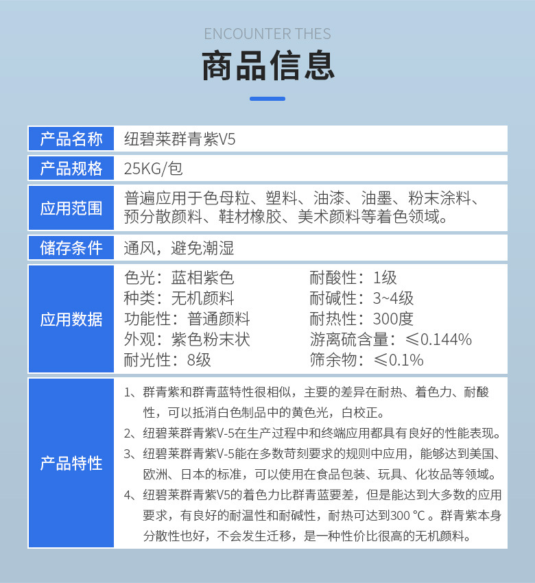 本网页所展示的有关【西班牙纽碧莱Nubiola群青紫V5V8V10无机调色颜料耐迁移耐高温色粉_粉状着色剂_深圳市吉田化工有限公司】的信息/图片/参数等由简塑橡胶网的会员【深圳市吉田化工有限公司】提供,由简塑橡胶网会员【深圳市吉田化工有限公司】自行对信息/图片/参数等的真实性、准确性和合法性负责,本平台(本网站)仅提供展示服务,请谨慎交易,因交易而产生的法律关系及法律纠纷由您自行协商解决,本平台(本网站)对此不承担任何责任。您在本网页可以浏览【西班牙纽碧莱Nubiola群青紫V5V8V10无机调色颜料耐迁移耐高温色粉_粉状着色剂_深圳市吉田化工有限公司】有关的信息/图片/价格等及提供【西班牙纽碧莱Nubiola群青紫V5V8V10无机调色颜料耐迁移耐高温色粉_粉状着色剂_深圳市吉田化工有限公司】的商家公司简介、联系方式等信息。