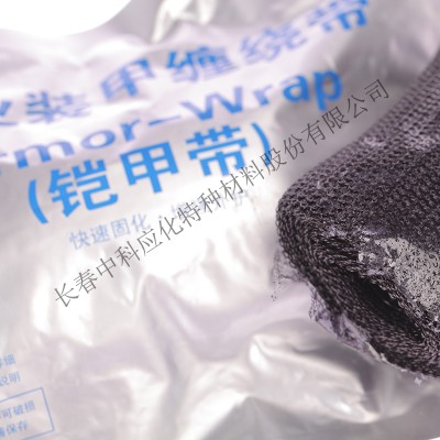 戴上手套,沿撕裂口处撕开包装,把水倒入包装袋中,挤捏数后取出缠绕带,挤掉多余水分。将缠绕带沿45度角方向逐步缠绕,1/3搭接并稍加用力缠绕,使缠绕带可以依据物体表面塑性。如遇到直径突然变大或突然变小的地方,可反折缠绕带进行绕包。以同样的方法缠绕4-8层。